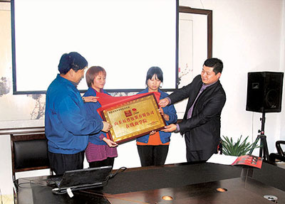 山東拓普包裝有限公司在線商學(xué)院2012年12月成立,總經(jīng)理蔣德貴(左一)、深圳市聚成企業(yè)管理顧問股份有限公司講師夏紅兵(右一)共同參加揭牌儀式。