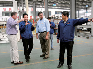 內(nèi)蒙古伊利集團(tuán)濟(jì)南伊利責(zé)任有限公司采購部翟部長(左一)率考察小組來山東睿豐包裝有限公司考察。...