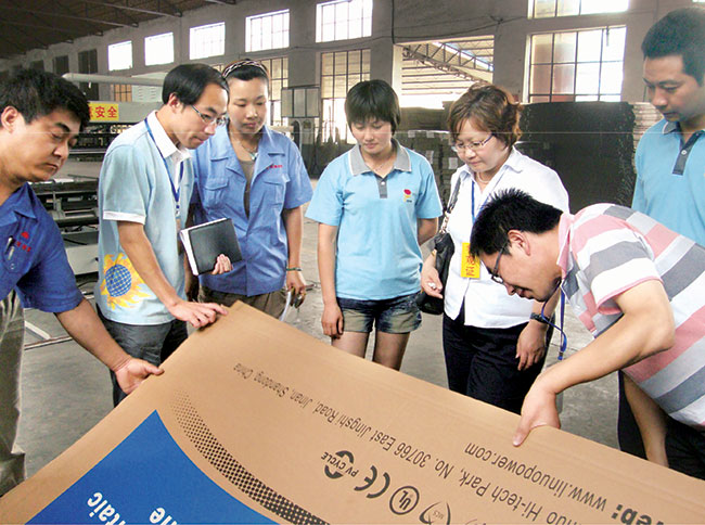 山東力諾光伏高科技有限公司采購總監(jiān)李德曄(右三)率考察小組來山東睿豐包裝有限公司考察訪問,雙方就市場形勢達成一致合作意見。