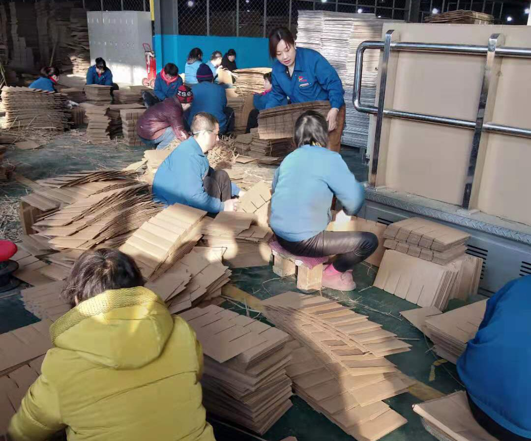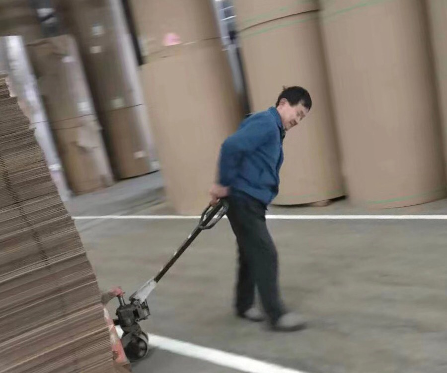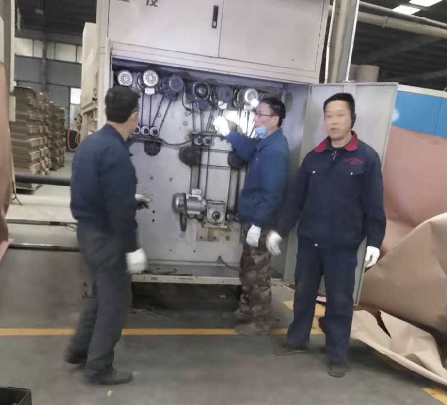 紙板分公司1.8線車間主任蔣其言親力親為,充分利用空間對紙板合理布局。